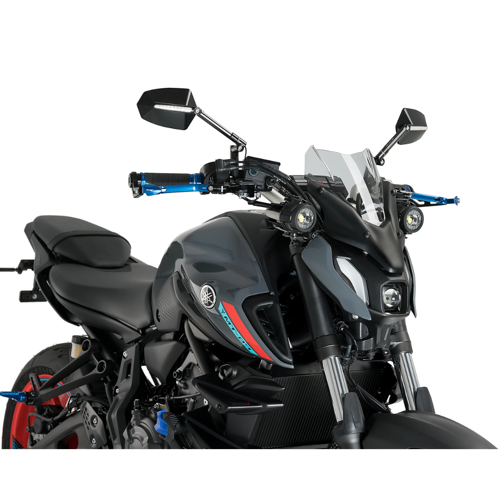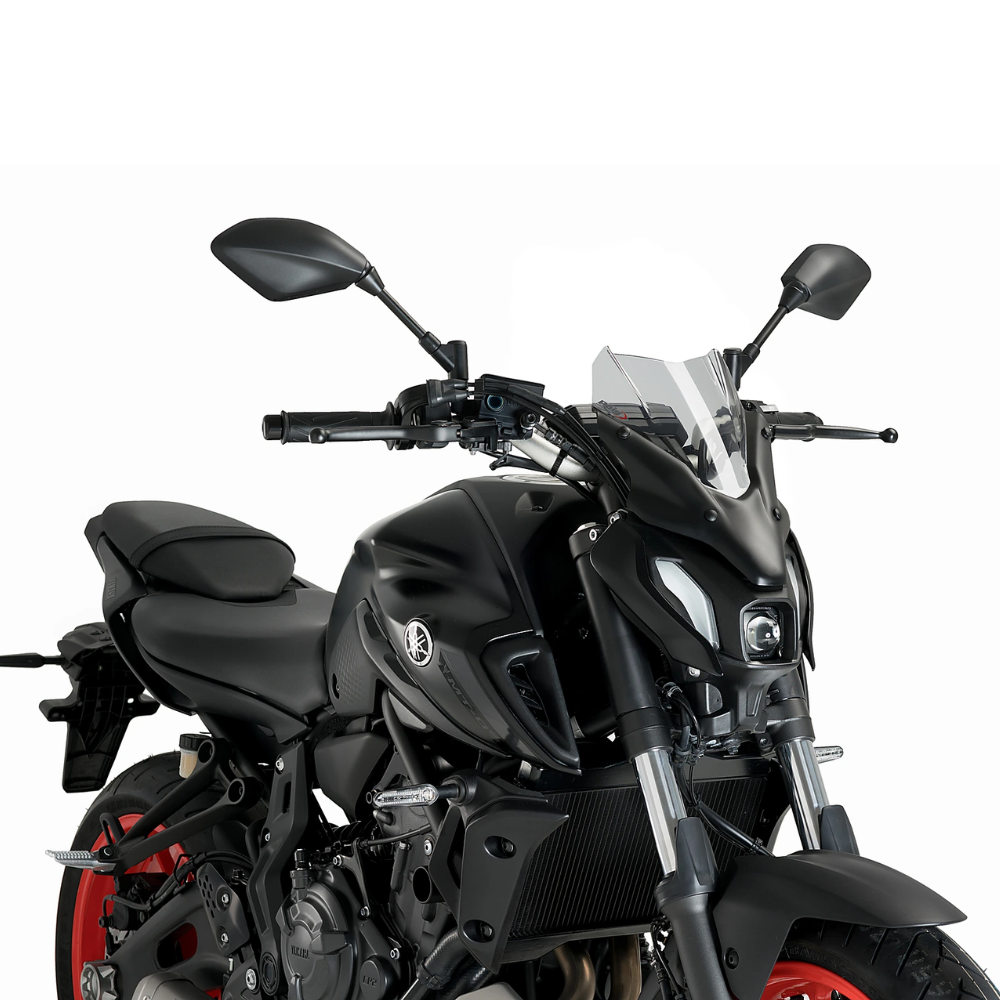 משקף PUIG מעושן ל־YAMAHA MT-07 PURE משדרג את מראה האופנוע, משפר אווירודינמיקה ומפחית את עומס הרוח ברכיבה.